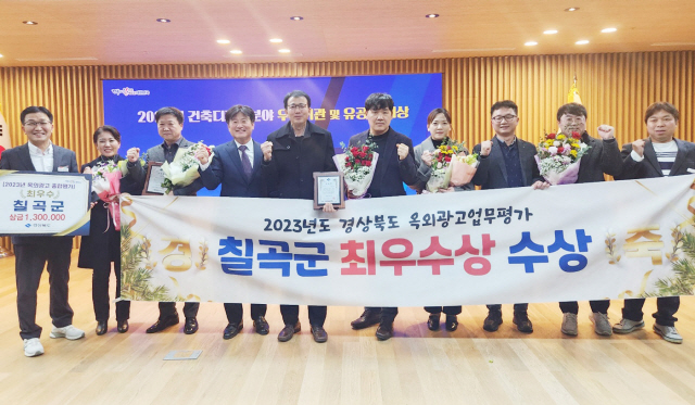 올해 칠곡군은 경북도 주관 공모사업으로 선정된 간판개선사업 실시, 불법유동광고물 수거보상제 및 정비반 운영, 태풍대비 위험간판 점검 및 불법광고물 근절 캠페인 등 다양한 시책을 추진해 옥외광고분야 최우수 기관 표창의 영예를 안았으며, 건축행정 분야에서도 건축안전지킴이 운영 등 건축행정 건실화 추진에 공을 인정받아 공무원 표창을 받는 쾌거를 이루었다.