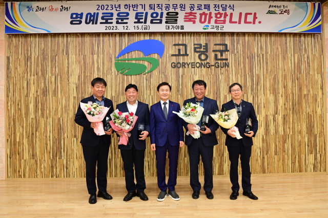 【경상포커스=전상철기자】고령군은 15일 대가야홀에서 ‘2023년 하반기 퇴직공무원 공로패 전달식’을 열어 퇴직자들의 노고에 감사의 마음을 전하며 석별의 정을 나누었다.