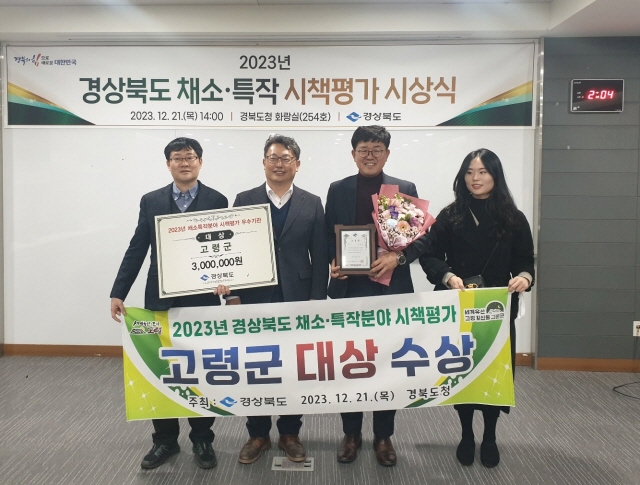 고령군은 다양한 시설원예 작물과 노지채소를 기반으로 시설현대화사업, 원예소득작목육성 사업 등 예산 확보와 집행에 노력한 점, 토마토 첨단스마트팜 기반조성사업을 통해 청년농업인 육성과 스마트농업 혁신을 선도한 점, 마늘‧양파 등 노지 채소의 정부 수급정책에 적극 참여한 성과 등을 인정 받아 대상을 수상하게 됐다.