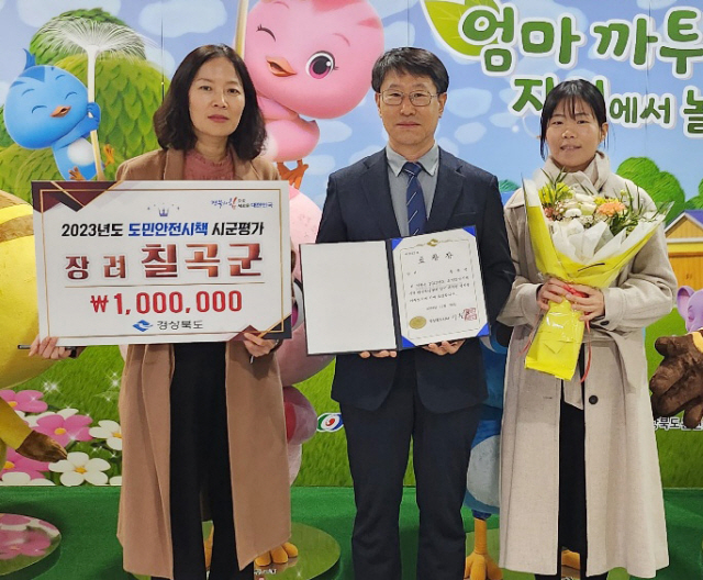 칠곡군, 2023년도‘도민안전시책 시·군평가’장려상 수상![]() 【경상포커스=전상철기자】칠곡군(군수 김재욱)이 지난 28일 경북도에서 실시한 ‘2023년도 도민안전시책 시·군평가' 에서 우수기관으로 선정돼 장려상을 수상했다.