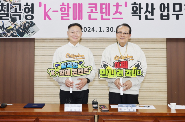 대한노인회와 칠곡군은 지난 30일 서울시 용산구 대한노인회 회의실에서‘K-할매 콘텐츠 확산을 위한 업무협약’을 체결했다.