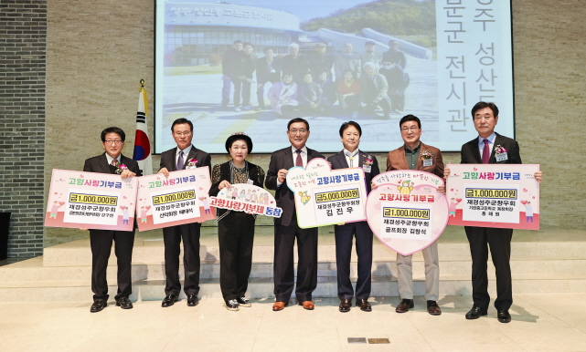 특히 재경성주군향우회 회원들의 성주인이라는 자긍심과 애향심에서 비롯된 고향사랑 기부 행렬이 이어져 ▷재경성주군향우회장 김진우 5백만원 ▷읍면회장단협의회장 강구현 1백만원 ▷산악회장 배태석 1백만원 ▷골프회장 김창석 1백만원 ▷가천중고등학교 동창회장 홍해원 1백만원 ▷나경미 고문 1백만원을 기탁했다.