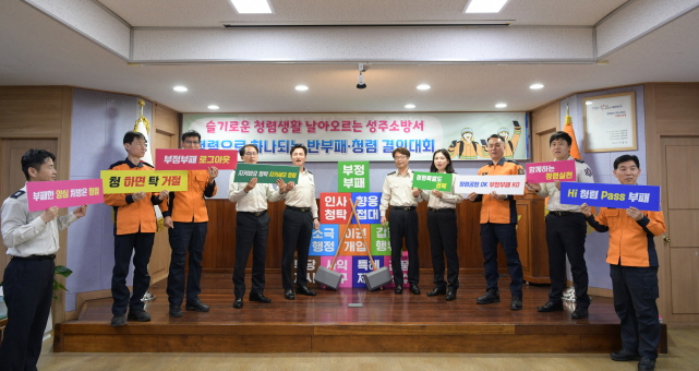 슬기로운 청렴생활 날아오르는 성주소방서 10가지 비리 유형 타파, 청렴실천 의지 다져【경상포커스=전상철기자】성주소방서(서장 김인식)는 8일 대회의실에서 직원 80여명이 참여한 가운데‘청렴으로 신뢰받는 경북소방 실천’실현을 위해 2024년 반부패·청렴 실천 대회를 개최했다.