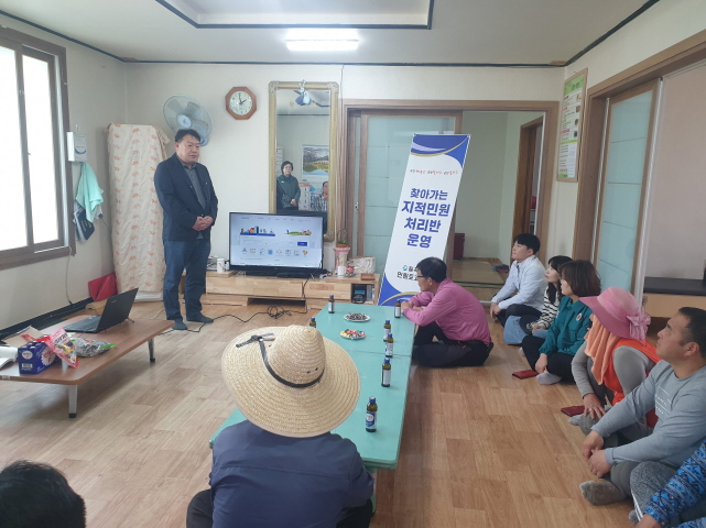 찾아가는 지적현장 민원상담실은 민원토지과 공무원과 한국국토정보공사 직원으로 구성된 합동처리반을 편성해 토지이동 및 지적측량 등 토지 관련 민원 전반과 생활민원에 대해 현장에서 직접 상담해주는 제도이다.