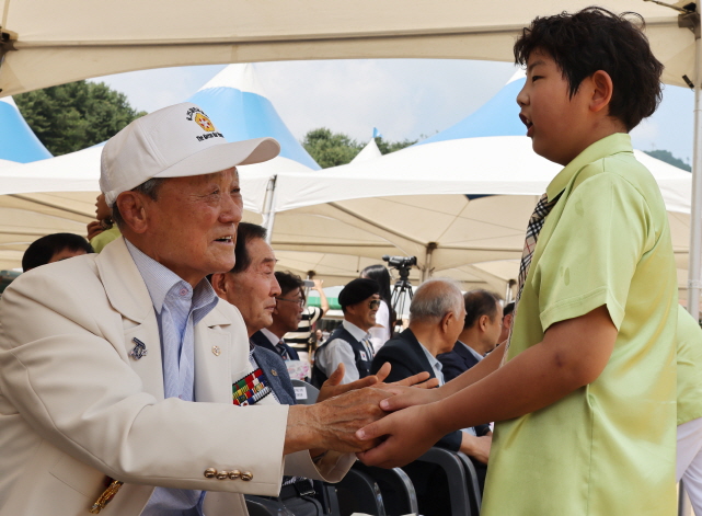 공연이 끝나갈 무렵 학생들은 무대로 내려가 김재욱 칠곡군수를 비롯한 보훈단체 관계자와 참전용사의 손을 잡고 노래했다.