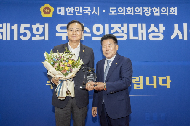 우수의정대상은 대한민국시도의회의장협의회가 능동적이고 선제적인 의정활동으로 지역발전에 크게 이바지한 의원들을 발굴ㆍ격려하기 위해 수여하는 상으로 올해 15회째를 맞고 있다.