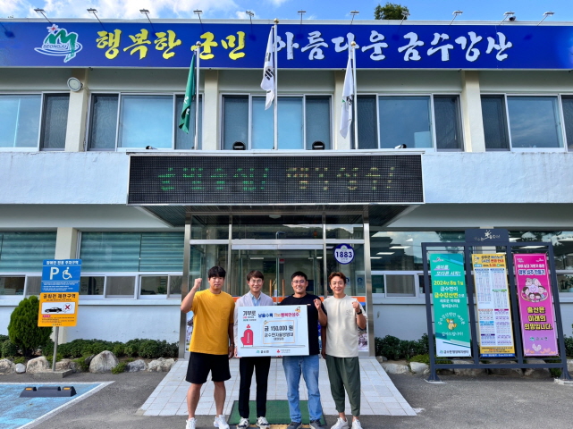 황희성 금수면장은 “저출생 극복 1만원이상 기부운동에 젊은 피가 흐르고 있는 금수면 자율방범대원 모두가 한마음이 돼 동참해주어 진심으로 감사하며, 금수강산면이 역동적으로 변할 수 있게 함께 노력하자.”고 당부했다.