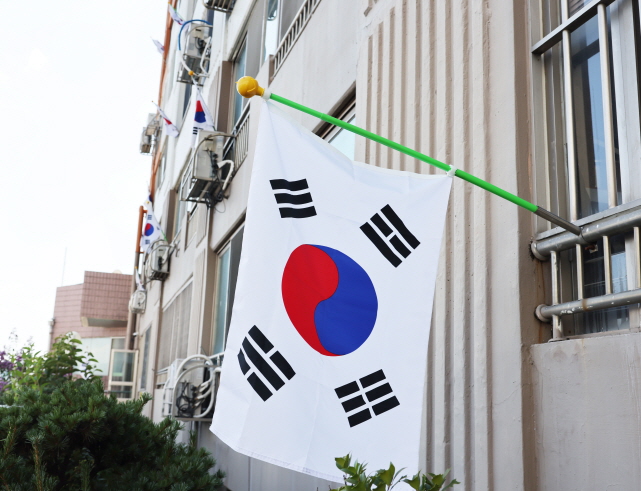 징검다리 휴일을 맞아 휴가를 가거나 이사로 인한 일시적인 빈집인 세대를 제외하면 모든 세대가 태극기 달기에 동참한 셈이다.