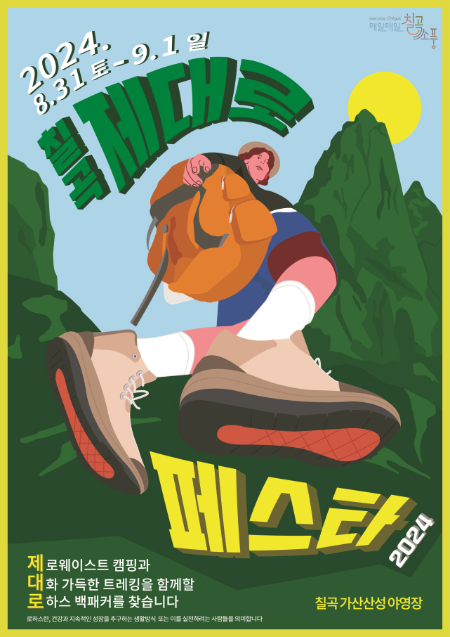 트레킹과 캠핑을 함께! 칠곡 ‘제대로페스타’ 개최![]() 8월 31일 ~ 9월 1일 가산산성 야영장에서 개최하는 백패킹 여행