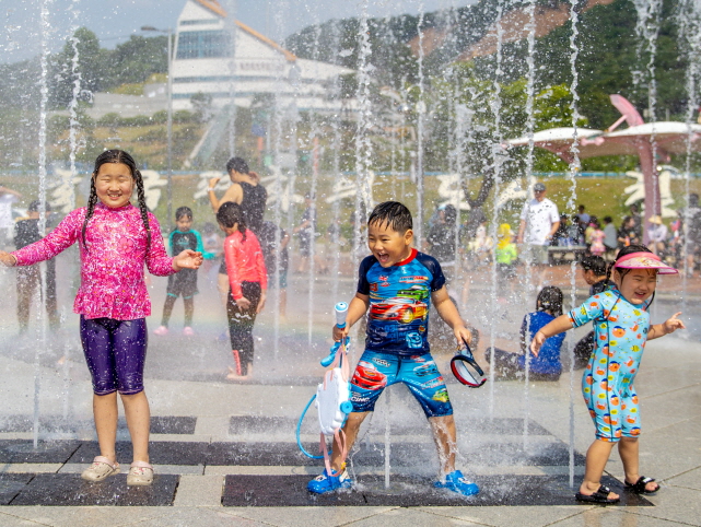 경상포커스=전상철기자대구와 경북 대부분 지역에 폭염경보가 내려진 6, 무더위도 삼남매의 웃음만큼은 막지 못했다. 칠곡보생태공원 바닥분수에는 시원한 물줄기와 함께 아이들의 환한 웃음이 퍼져나갔다.