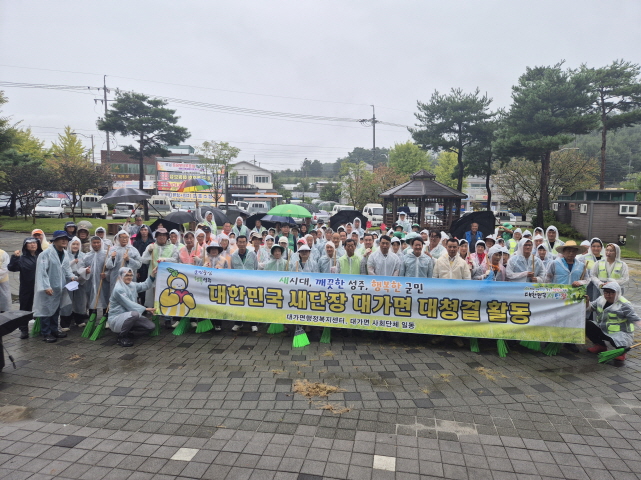 본 행사는 다가오는 추석을 맞이해 면민이 함께 참여하는 국토대청결 활동을 진행함으로써 청결한 대가면의 이미지를 제고하고 깨끗한 환경을 조성하기 위해 진행된 것으로, 궂은 날씨에도 불구하고 행사에 참여한 사회단체 회원들은 복지회관에 모여 면소재지 주변에서 낙엽을 쓸고 주변 쓰레기를 수거하는 청결활동을 벌였다.