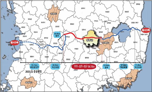 동서3(새만금~포항) 고속도로는 서부권과 동부권을 직접 연결하는 국가 간선축으로, 202511월 새만금~전주(L=55.1km) 구간이 개통되면, 무주~성주~대구 구간만이 미개통 상태로 남게 돼 현재까지 영호남 간 물류 이동과 산업 연계가 크게 제약을 받아왔다.