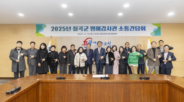 이날 간담회는 기획감사실장, 청렴감사팀장, 칠곡군 명예감사관 등이 참석한 가운데, `군수 인사말`, `명예감사관 제도 안내`, `2026년도 운영계획 보고`, 읍면별 현안 논의 및 건의사항` 순으로 진행됐다.