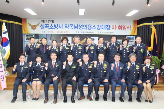 【경상포커스=임종구기자】칠곡소방서는 지난 26일 오후 5시, 약목면 평생학습복지센터에서 각 읍․면 의용소방대장과 유관기관 단체장 등 200여명이 참석한 가운데 약목남성의용소방대장 이․취임식 행사를 가졌다.