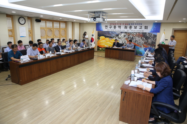 【경상포커스=전상철기자】성주군은 26일 군청 소회의실에서 군수, 군의장, 부군수, 도의회 농수산위원장, 군의원, 관련 공무원, 농업인단체 회원 등 40명이 참석한 가운데 “성주농업 조수입 1조 달성을 위한 추진전략 연구용역” 최종보고회를 개최했다.