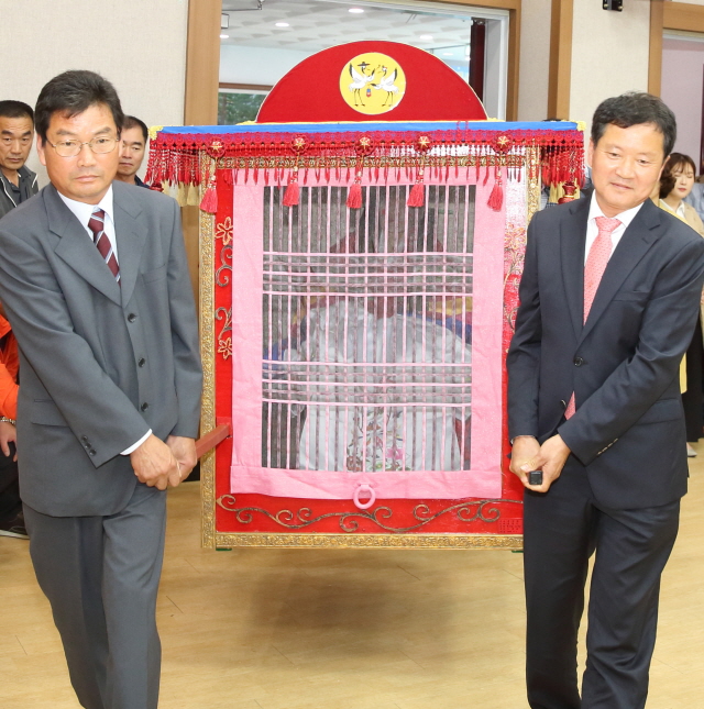 그리고 6일날 가산면 평생학습복지센터에서 열린 할매할배의 날 행사의 주인공이자 금혼식의 주인공인 용수리 주민 박유윤․이연이 부부는 주민들이 직접 제작한 가마를 타고 전통혼례식으로 금혼식이 치러졌다 그야말로 본인들 뿐만 아니라 주민들에게도 동네잔치였다
