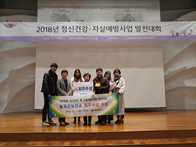 칠곡군은 마음성장학교, 찾아가는 정신건강상담, 마음건강백세 프로그램, 정신질환자 회복지원 Re:Start 프로그램, 신규환자 등록 사례관리, 게이트기퍼 양성교육 등의 프로그램이 높은 평가를 받았다.