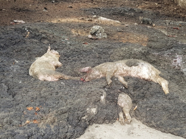 【경상포커스=전상철 기자】지난 24일 오후 2시30분경 경북 고령군 우곡면 양돈단지에 소재한 C농장이 폐사한 돼지 사체를 분뇨저장소에 폐기해 야생조수류와 들고양이들에 무방비로 노출되고 있다.