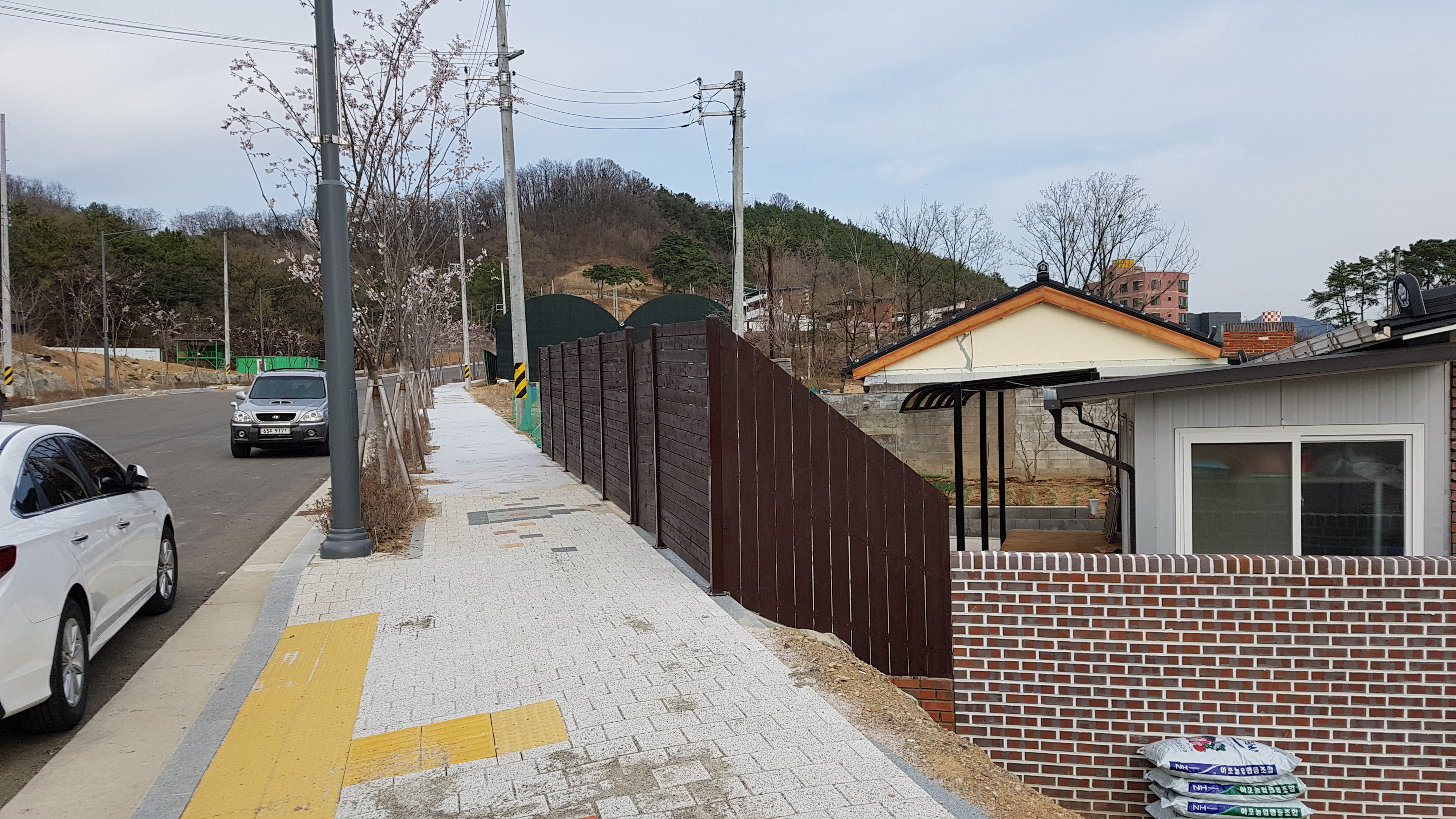뿐만아니라 인도를 침입해 방음벽(담장)이 설치돼 주민들로부터 지탄받고 있으며 시공사의 공사 편의주의 형태를 보였다.